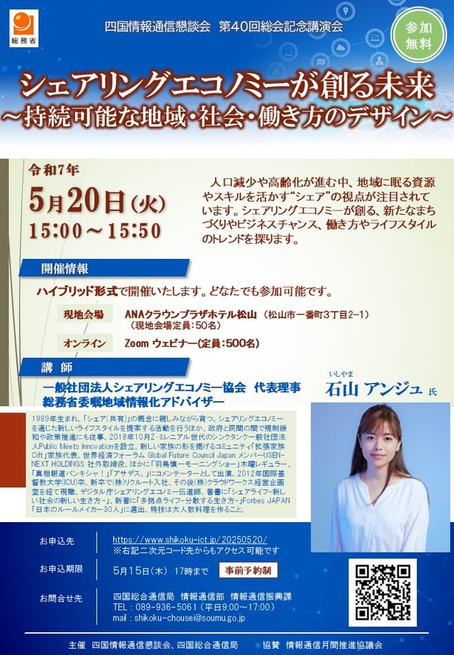 演題:「シェアリングエコノミーが創る未来 ~持続可能な地域・社会・働き方のデザイン~」