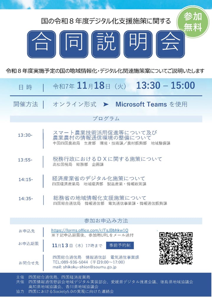 【共催行事】「国の令和8年度デジタル化支援施策に関する合同説明会」を開催【申込〆:11月13日(木)17時まで】★11月18日(火)開催★