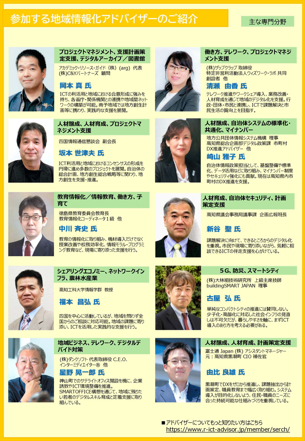 ・地域情報化アドバイザー自己紹介、活動内容紹介(四国を活動基盤とされている10名のアドバイザー)
