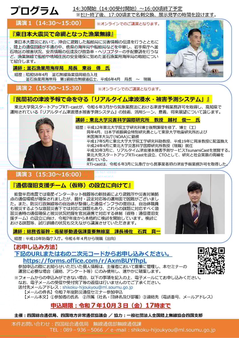 ★10月7日開催★「令和7年度 防災通信セミナー」を開催(四国総合通信局)